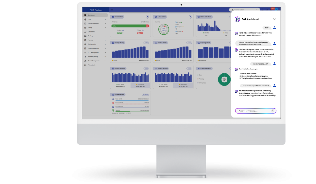 PAI (PHP Artificial Intelligence) works as a continuous intelligence engine inside your network, quietly analyzing everything from traffic patterns to user activity. It simplifies complex telecom data into easy, understandable insights that teams can act on instantly. Instead of just showing data, PAI explains what’s happening and why it matters.